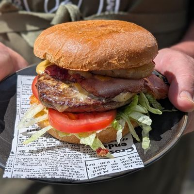 Two Eggs, two rashes of Bacon, Cheese & Chutney